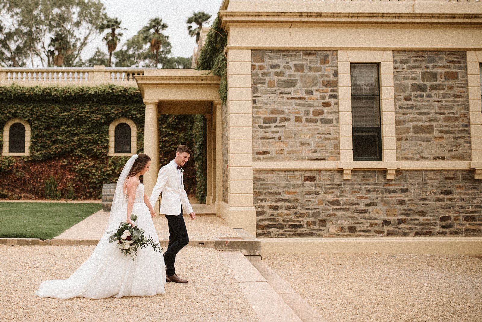Seppeltsfield is a lovely wedding venue nestled into gorgeous farmland near Clare, South Australia. It features a historic home with a stunning interior, a well designed bridal suite, and a large barn space with room for a large reception.