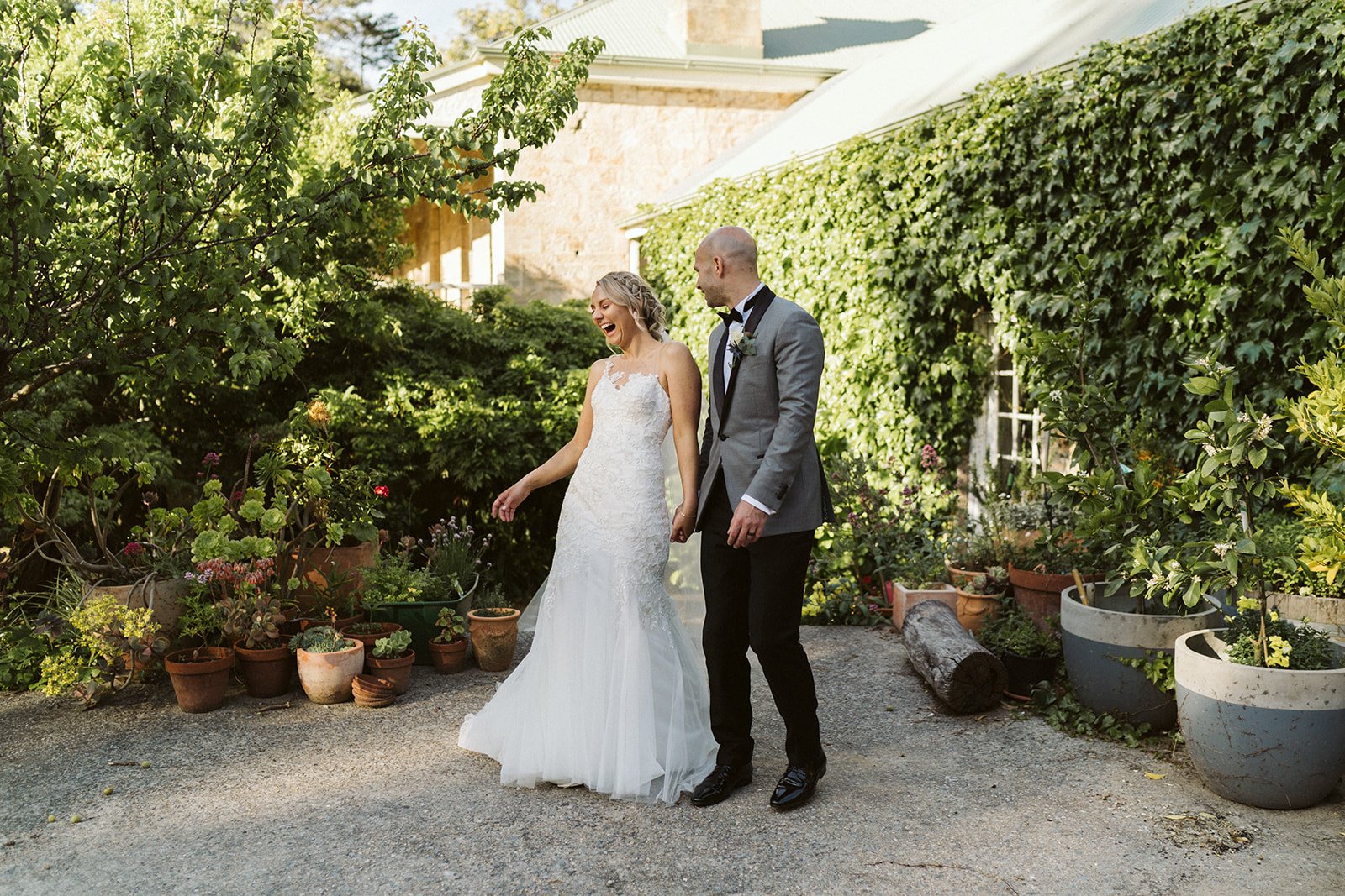 Offering beautiful spaces for your ceremony, photography and reception, delicious menus and award winning wines, look no further than Golding Wines for your dream wedding. The family have been hosting beautiful weddings at Golding Wines since 2002, and have built an experienced team who are there to help you in the planning of your big day. The vineyard is situated in a secluded valley, surrounded by rolling vine-covered hills. As you wind your way up the driveway, you will pass majestic 100-year-old gums, before arriving at the stone barn located in the award-winning landscaped garden.